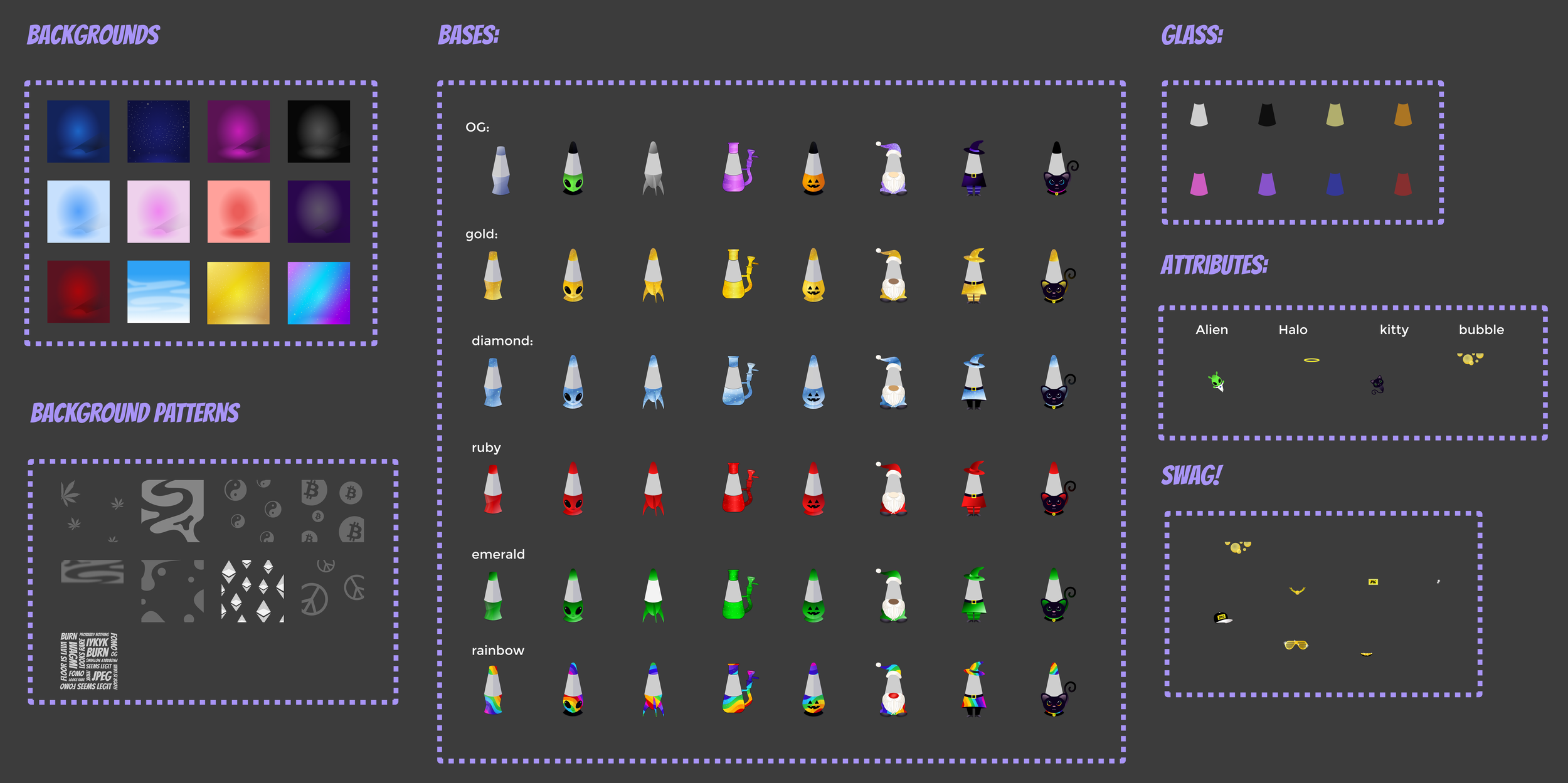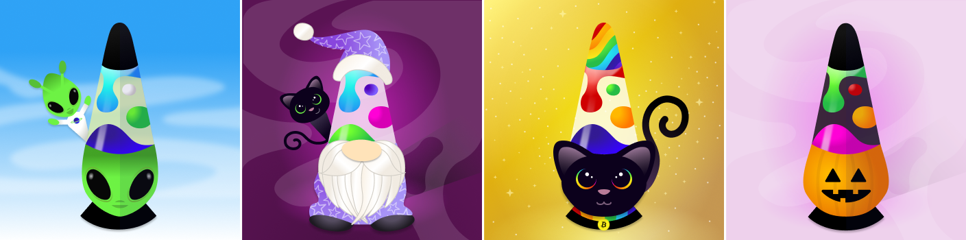 I was brought on the create the artwork, an exciting challenge. My goal was to create about 10k unique lava lamps, which I designed systemically.