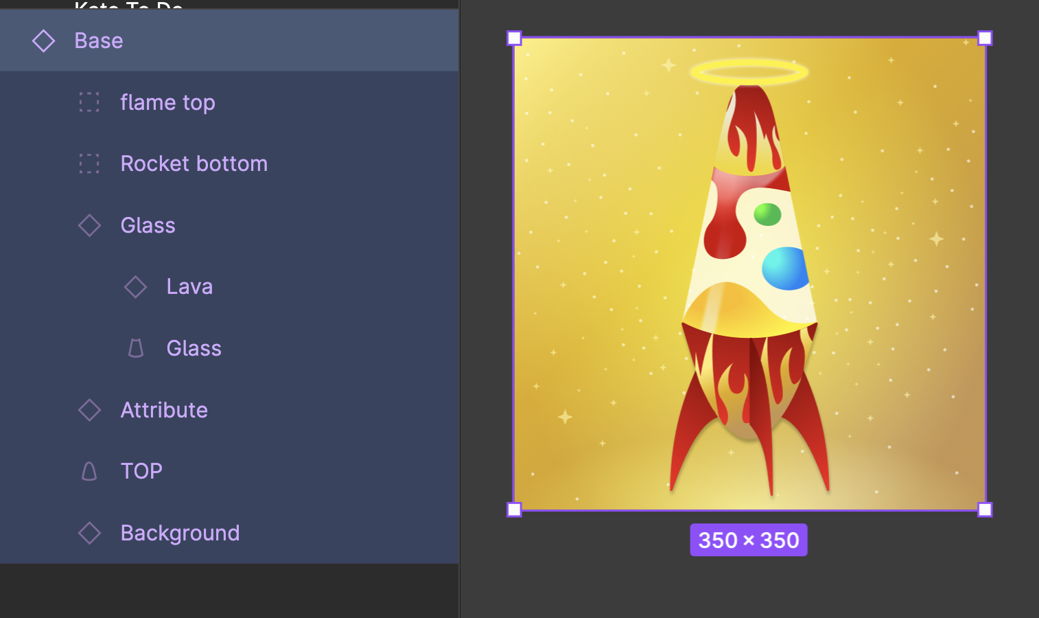 I set the file up so I could “swap” out different attributes of the art such as backgrounds, base shape/color, glass color, and more.